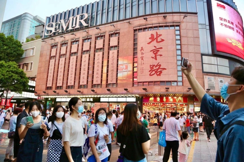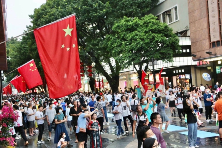 国庆假期,广州北京路、中山路游客非常多,不少是从外地到广州参观游玩的游客。