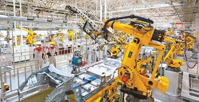 在山东省日照市长城汽车生产车间,机器人正在生产智能汽车。