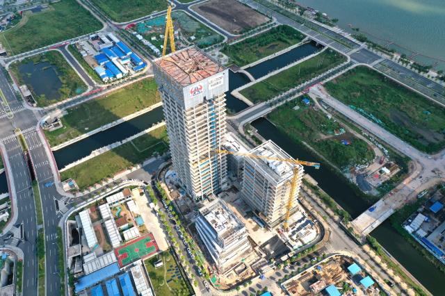 9月29日上午,利通金融中心(一期工程)封顶仪式在广州南沙明珠湾起步区灵山岛尖举行。