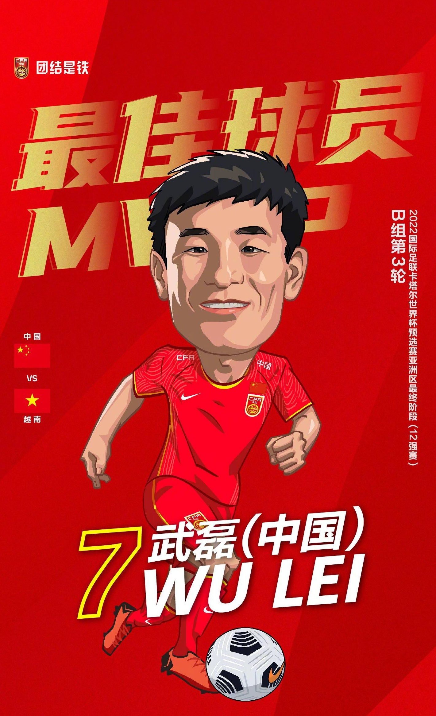 功臣武磊则说:“进球之后的庆祝动作是献给太太,这几年在西班牙踢球,太太给了我很大支持。回到国家队后,一个人带两个孩子,很辛苦。”