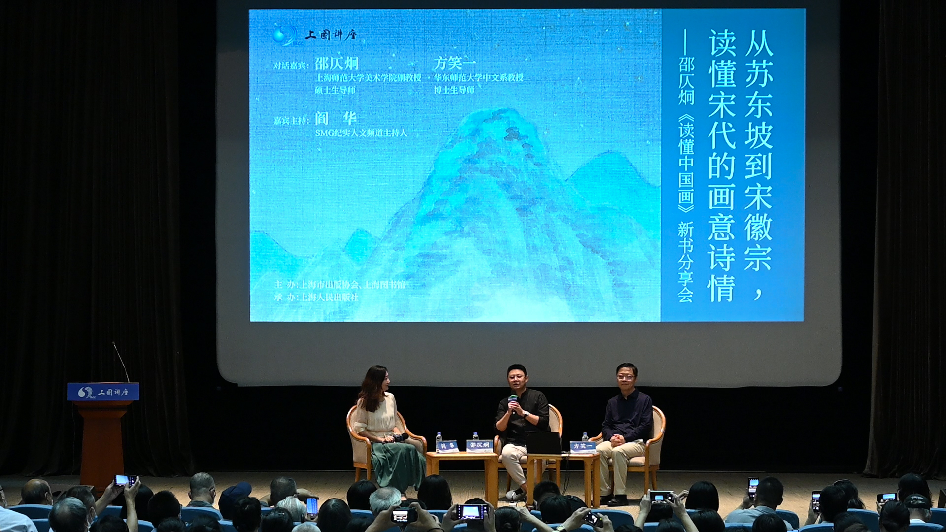 2021年10月7日下午,在上海图书馆诺大的报告厅里,上海师范大学美术学院副教授、上海美术家协会中国画艺委会委员邵仄炯以新书《读懂中国画》为引,与华东师范大学中文系教授、中国创意写作研究院副院长方笑一展开对谈,围绕宋徽宗与苏东坡的艺术成就,探寻宋代院体画与文人画的审美路径,并通过宋徽宗的大量题画诗与苏东坡的“诗画本一律”之说揭示中国绘画与诗意的深层关系。