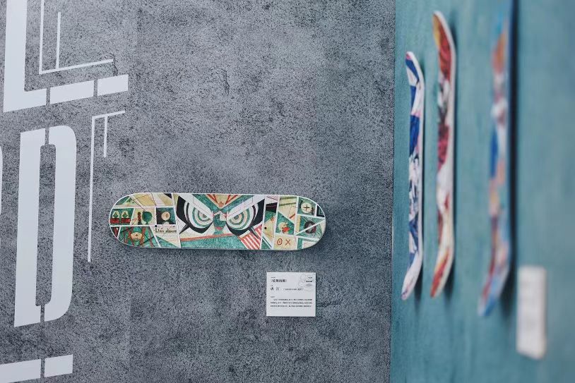 此次活动还展出了广州市美术中学部分同学的滑板绘画作品。作为发起人之一,周文分享了本次活动的灵感:“2018年时,我曾把‘画一滑/Draw n Sk8’滑板艺术项目带回我的母校广州市美术中学,当时就萌生了岭南文化和滑板文化相融合的艺术创作想法。说起南狮,大家脑海里都是跳梅花桩、武功高强的形象,滑板和它也有相似性。这个艺术项目,一动一静地展示滑板文化,覆盖更多不同兴趣点的人。”