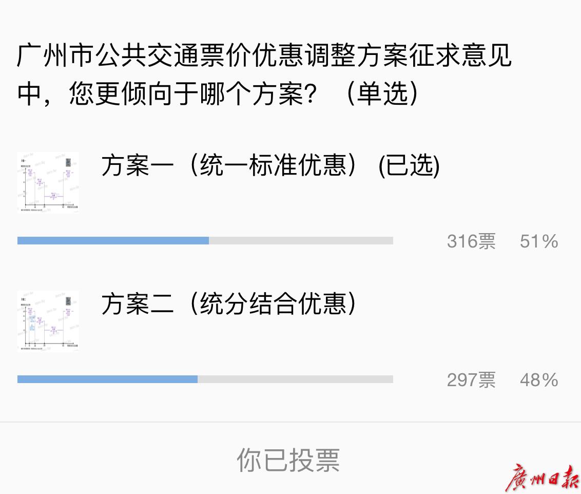 此前的投票情况显示,《意见稿》两个方案的得票率对半开。有市民建议,将方案1和方案2合并,在方案1优惠不减少的基础上,加上方案2的公交满40元9折的“优惠补丁”,兼顾地铁+公交、纯公交出行的市民。