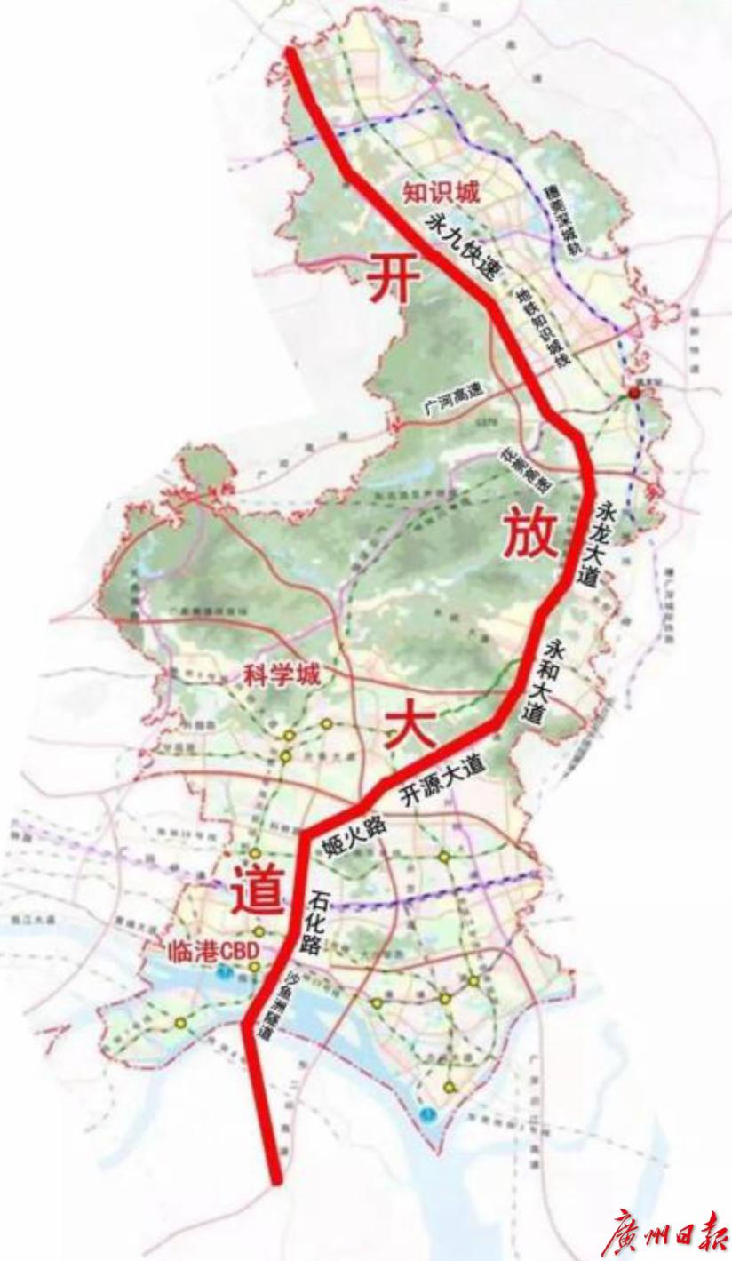 2019年在广州东部黄埔区启动开放大道建设,作为广州市南北向交通的重要通道,并将强化广深科创走廊中广州板块相关核心和节点之间的联动。