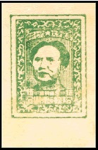 刘建辉介绍,《中共七代大会》邮票的全称是《中国共产党第七次全国代表大会纪念邮票》,后来因为邮票的票幅比较小,只有19×26毫米,就把全称改成简称了。下方写有“山东战邮”,“山东战邮”上面写有“1945”,两边是“伍分”,毛主席像的上方是“中共七代大会纪念”,上面有五角星,周围有花纹来装饰。“这种花纹的装饰,在过去解放区邮票里是比较少见的,增强了艺术性。而且这个邮票是绿色的,绿色代表什么?它代表生命、长青、生生不息,代表着我们中国共产党领导的人民战争一定会取得全面的胜利。而它的主图选择用领袖的头像来做邮票的内容,其实是给那个年代的人们带去巨大的精神力量。”