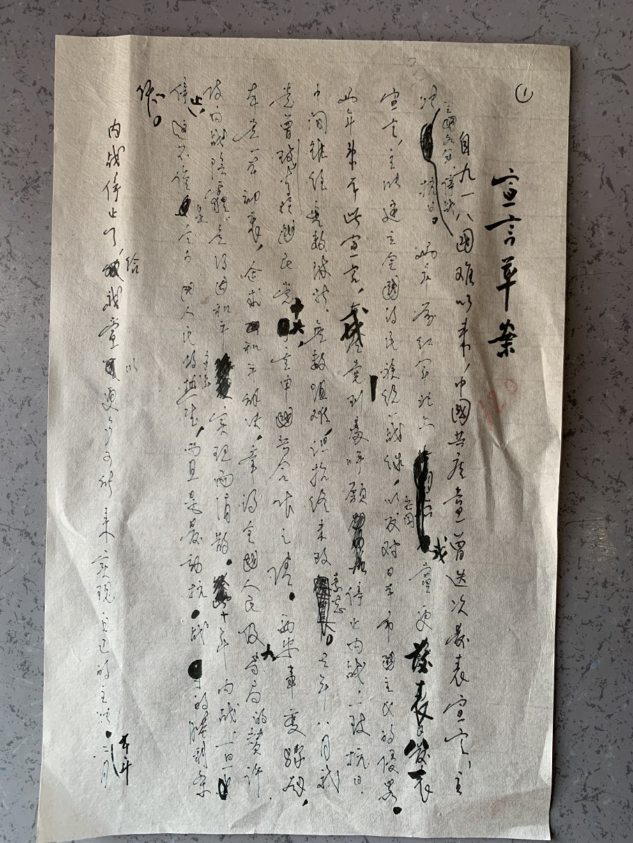 国共合作宣言手稿(台儿庄战役纪念馆提供)