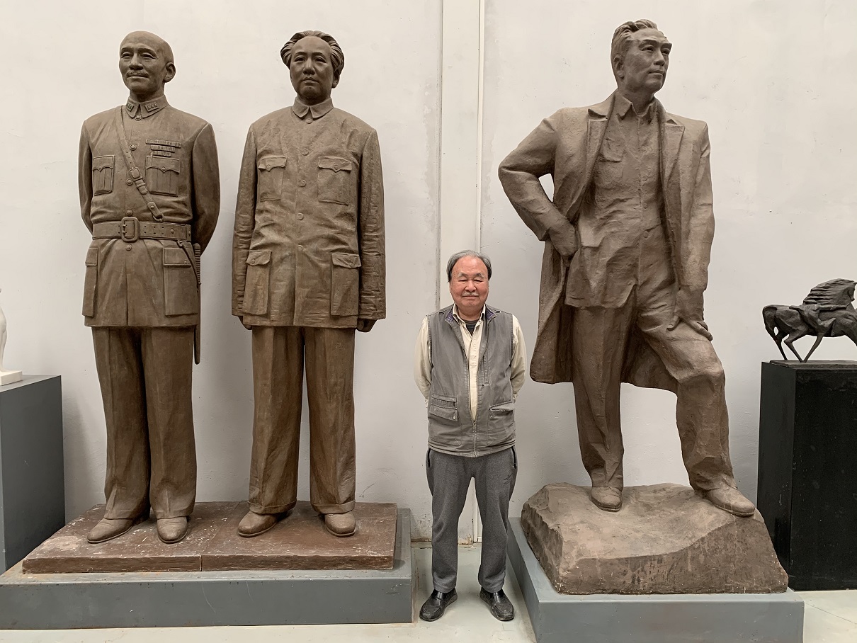 今年已经82岁高龄的梁明诚创作过多个政治性主题的雕塑作品。1939年12月,他出生在广东省南雄县,“我父亲是中医,家里还有两个哥哥,一个姐姐,日子原本过得还算太平。”然而1944年,日军在我国大陆上进行“打通大陆交通线”作战,5月,日本侵略军为了打通粤汉铁路,向粤北侵犯。日军进攻粤汉路南段,11月,日军攻占了韶关,打通了粤汉铁路,南雄论陷,当时年仅5岁的梁明诚和父母、小哥哥举家逃难到位于粤东的平远县。“南雄靠近铁路,记得当时,日本人一来,我们就往东跑,因为平远是山区,很不方便的,估计日本人很难走到那里去,我们就跟着一批人一起往那里逃难。”