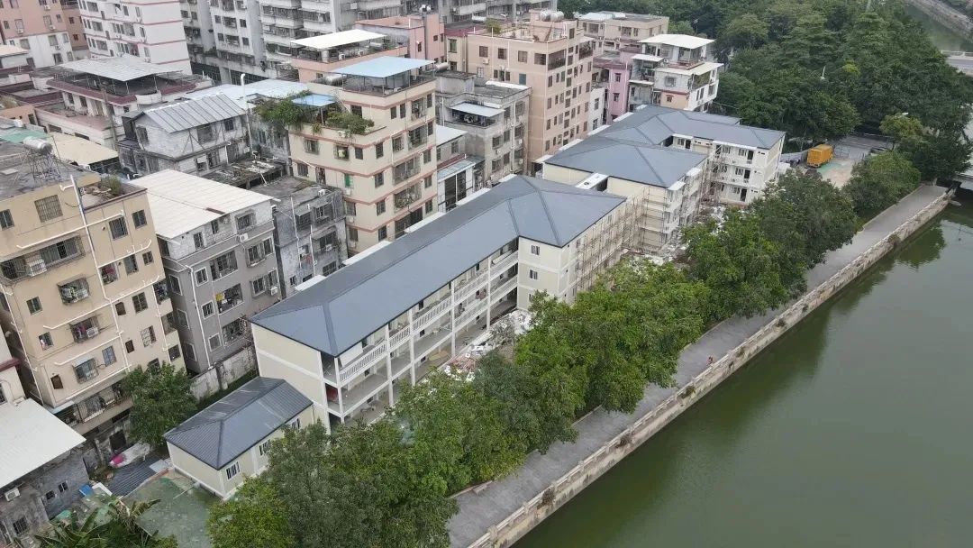 据悉,新溪项目长者临时安置区,位于大沙地东路与乌涌的交界处,已于8月1日正式进场动工,共设置63套安置房,配备多种功能用房。目前安置区箱体框架组装已吊装完成,正进行硬装和软装装饰,其他工程施工也同步进行中,预计近期可以安排新溪村长者入住崭新舒适的安置区。