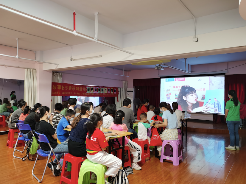 荔湾区图书馆老师为亲子家庭讲故事。