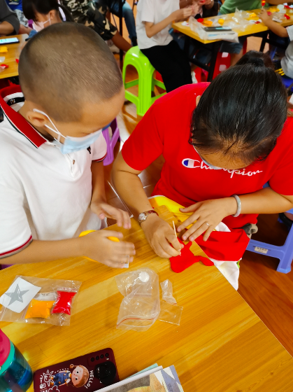 本次亲子活动,社工采取了让孩子们自带书籍的方式,带一本平时最喜欢的书籍,邀请父母一起阅读,告诉父母为什么喜欢这本书,自己通过阅读这本书收获了什么,同时借此机会向父母说出平时想说却没有说出来的一些心里话,让父母了解自己最真实的想法。最后,社工引导孩子和家长一起用轻黏土制作小手工,发挥亲子之间的创作和动手能力,从而加强亲子之间的互动和沟通。