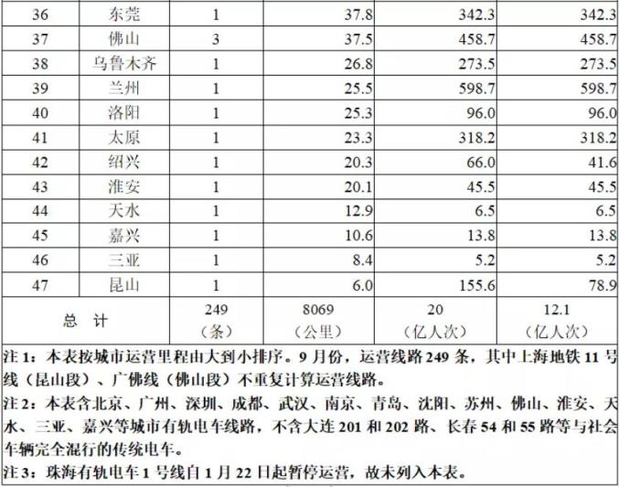 因特大暴雨停运的郑州地铁于9月12日起陆续恢复运营,所以表格中郑州轨道交通的客运数据不能反映常态情况。