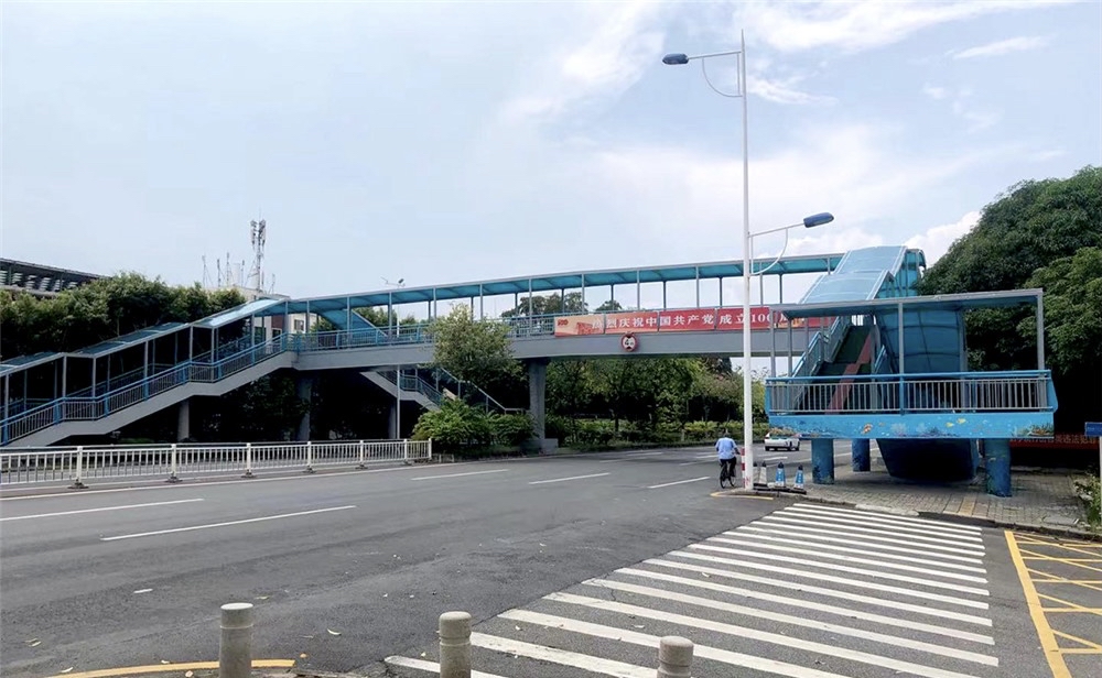 蚬涌村人行天桥位于番禺区市南路蚬涌小学旁,很多家长和学生都会通过这座人行天桥过马路,此次升级改造工程利用暑假时间进行施工就是为了保障学生和家长的安全,工程于今年中秋节前全部完工,现在桥面已经恢复了通行。