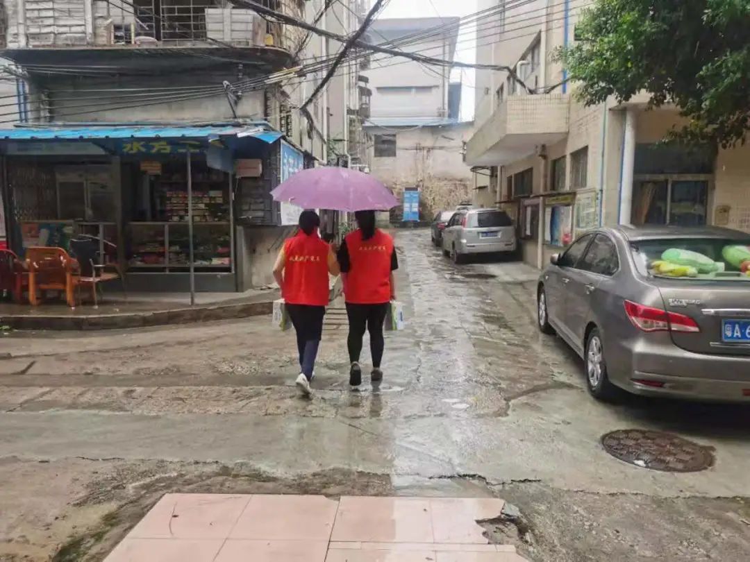 由于天气原因,慰问活动采取“逐户上门”方式开展,到场党员分为了3个慰问小队,由社区网格支部书记带队,大家一手打伞一手拿着慰问物资,把节日的关怀和祝福送到长者家里、送进长者心中。“谢谢你们啊,下着雨还过来。”看到慰问小队,长者们都开心不已。