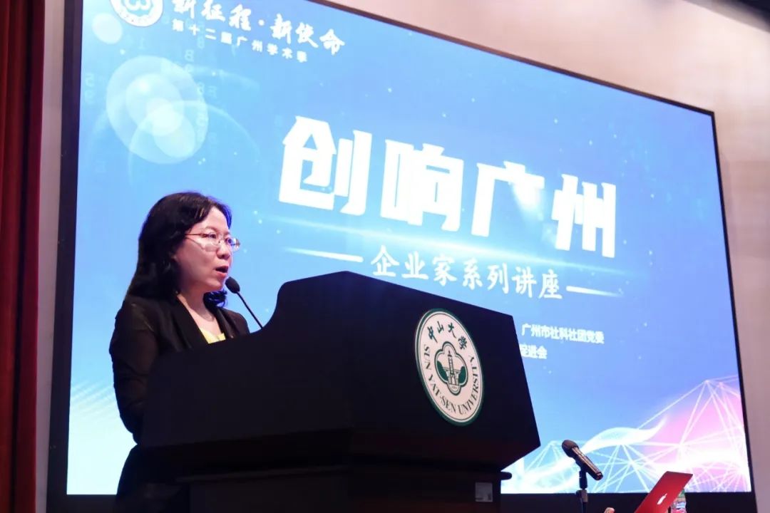 谭晓红在致辞中表示,广州市社科联作为党委、政府联系社会科学界人士的桥梁和纽带,一直以来坚持发挥自身优势、联动社科资源,打造了一系列面向高校青年群体的学术文化活动品牌,得到了社会各界的广泛认可与肯定。广州作为国家中心城市、粤港澳大湾区核心城市,无数优秀企业在这里成长壮大。广药集团作为广州的龙头企业之一,集团党委书记、董事长李楚源来到中山大学为“创响广州”企业家系列讲座作第一场讲座,讲述企业家与城市共同成长,创新创造创业的故事,为接下来的讲座开了一个好头,相信这场精彩演讲,会成为中大学子们大学生涯中的“难忘一课”。