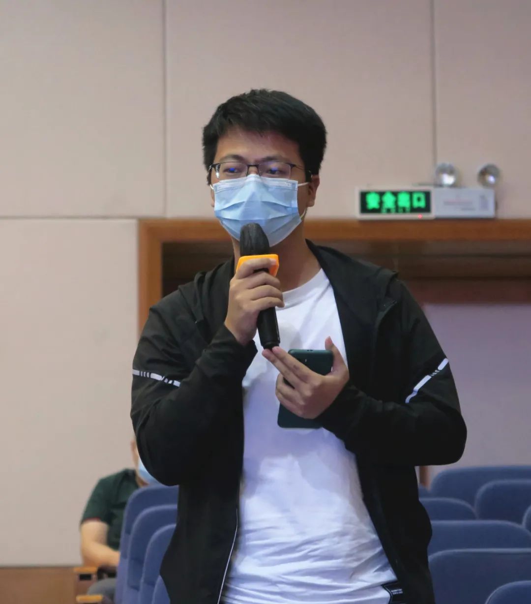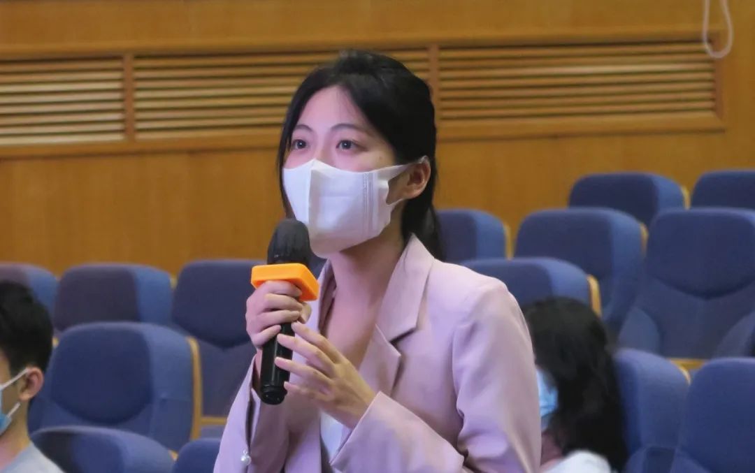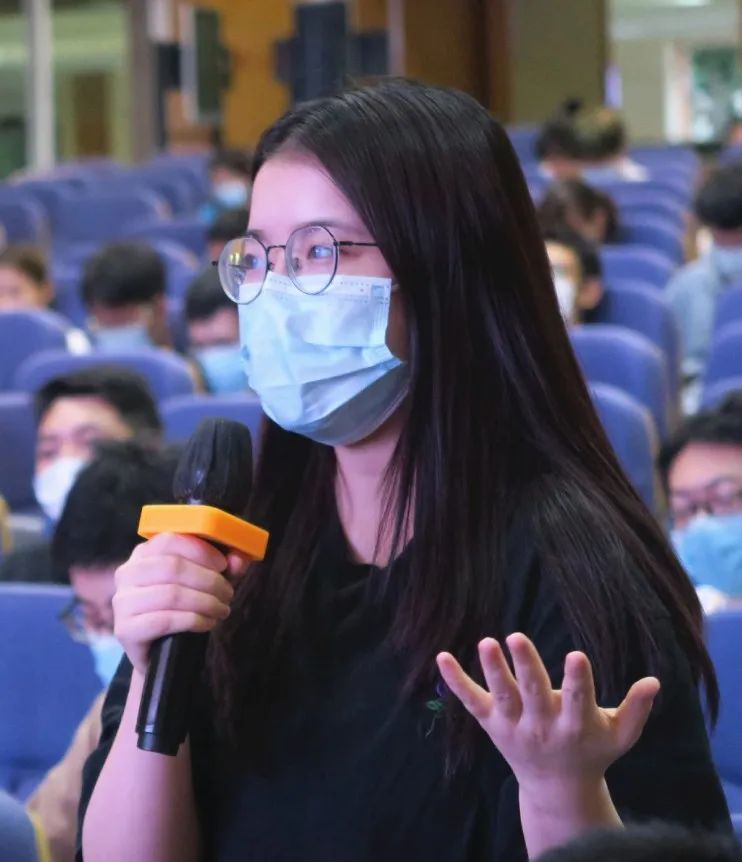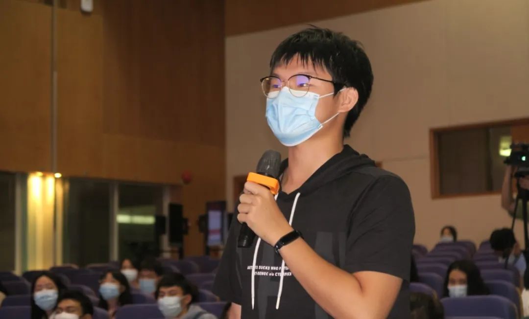 ▲学弟学妹们向李楚源学长提问。