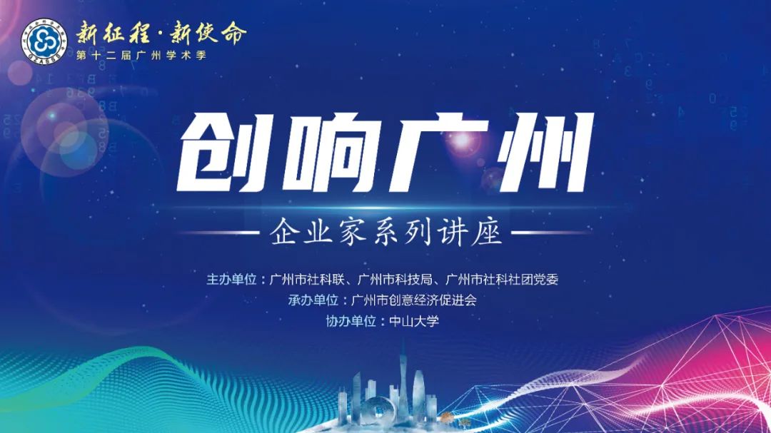 10月13日,由广州市社科联、广州市科技局、广州市社科社团党委主办,广州市创意经济促进会承办的“创响广州”企业家系列讲座首场活动在中山大学广州校区南校园第三教学楼讲学厅隆重举行,拉开了第十二届广州学术季的序幕。