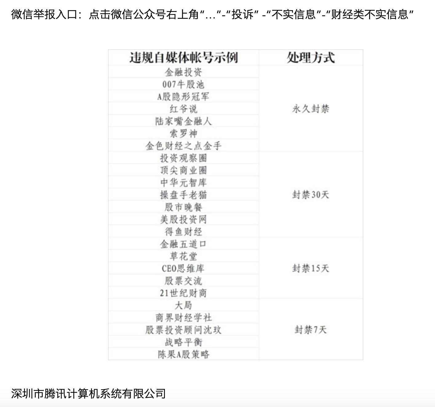 值得注意的是,名为“陈果A股策略”的微信公众号也在此次封禁之列,腾讯对其采取了封禁7天的处理方式。