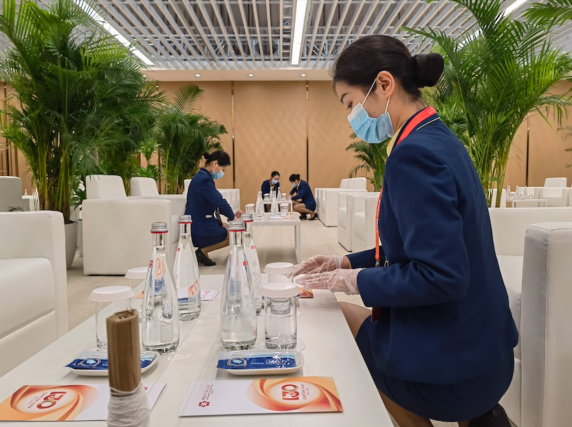 实际上,高质量会务服务的背后得益于服务标准化、规范化的制定。据悉,在主办方的指导下,广电城市服务根据本次规格接待形成一套完善的符合现场要求的工作方案及标准化服务体系,从茶水温度到泡茶时间,从物资摆放角度到客服手势仪态等方面均有着严格周密的作业流程及标准。同时针对不同的会场区域制定相应的会务方案,精确每一个步骤的时间,规范每一个服务的动作和细节。