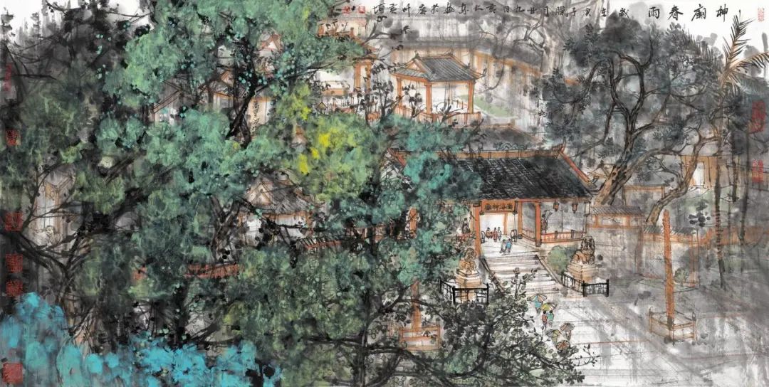 《神庙春雨》广东省美术家协会会员黄大东作品