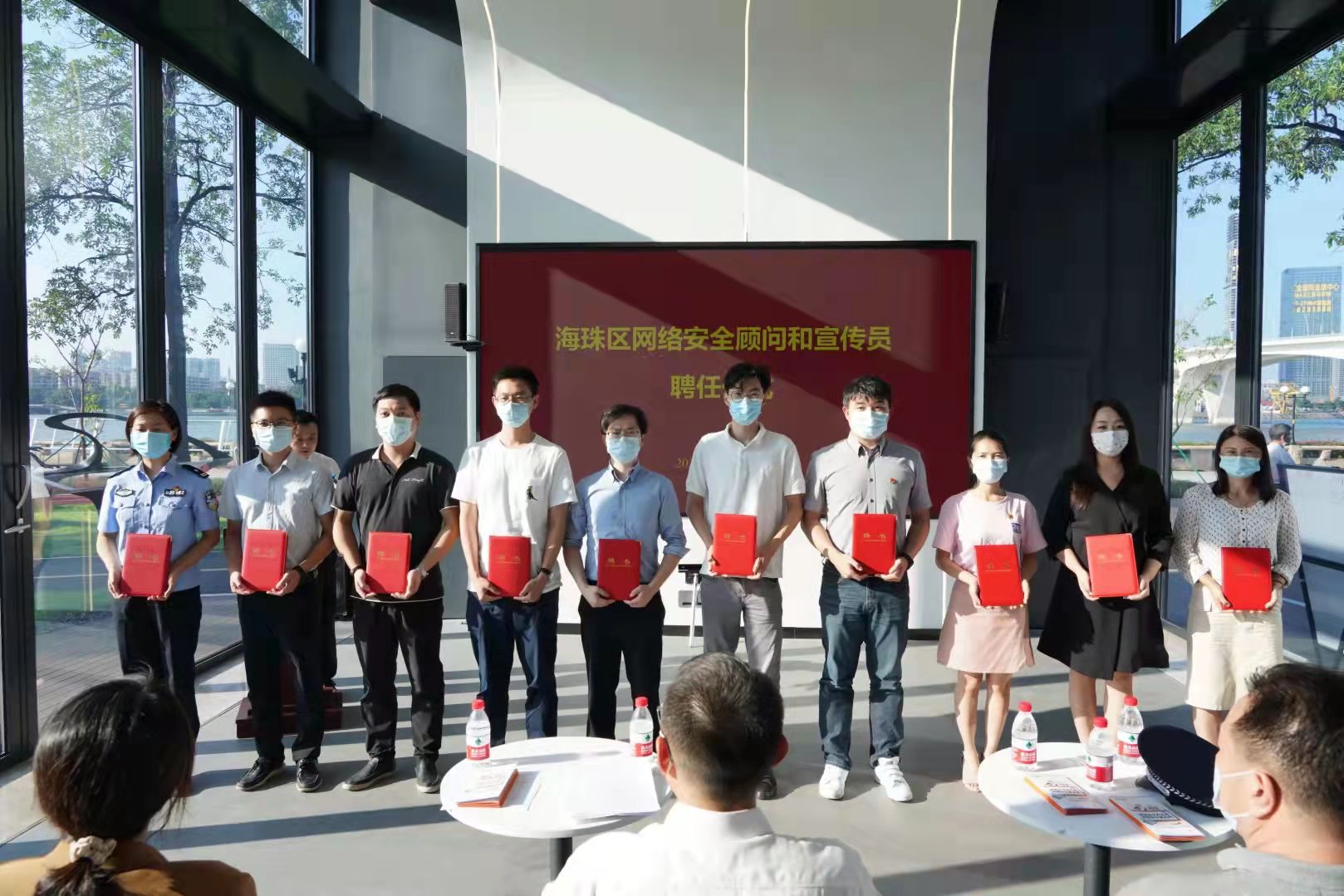 启动仪式上,海珠网安小达人G仔再度现身,现场全新演绎《网络安全小达人课堂(第二季)》,通过动漫向广大网民生动讲述防范网络安全陷阱技巧。海珠区向中国移动通信集团广州分公司、奇安信安全技术(广东)有限公司、启明星辰信息技术集团股份有限公司的3名网络安全顾问和辖内相关部门、企业的10名网络安全宣传员颁发了聘书,并组织现场人员携手提出安全上网、文明上网倡议,旨在政企联动、齐心协力共筑坚强网络安全铜墙铁壁。