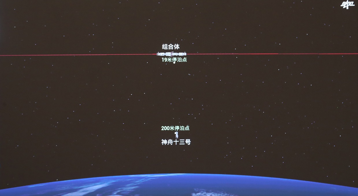 飞船转入自主交会对接模式后,紧接着的6个小时的快速交会对接流程,6次自主变轨、转寻的控制,过中瞄点、飞船俯仰调姿……在一步步按计划实施的程序中神舟十三号向着组合体靠近,6点22分,两者之间的距离只有200米了,14分钟后,组合体的对接机构清晰地在飞船上方19米处出现,现场所有人将见证飞船第一次从径向与天宫对接,全新的视角,也带着全新的挑战。