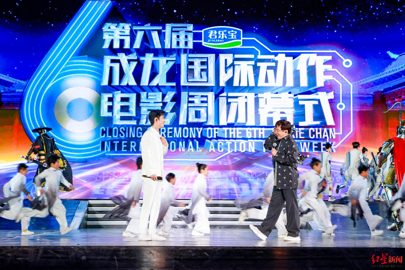 后台,成龙透露会和吴京“先来个小合作,有个大合作在进行中,我们正在聊剧本。”王宝强在接受采访时则表示,每一届成龙国际动作电影周都令他印象深刻,动作演员很不容易,这个电影周给了动作电影人很大的鼓励。王宝强透露今年印象最深的动作电影是《长津湖》,它的成功给了动作电影人很大的信心。