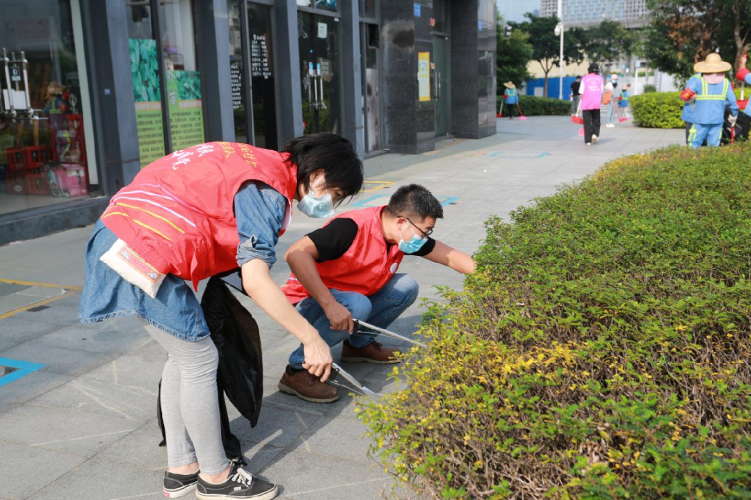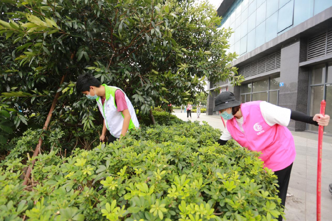 活动中,石壁街“满天星”巾帼志愿服务队队员、党员、志愿者等人员分成两组,对敏捷时空公馆外围绿化带及周边环境进行综合整治。大家清扫了路面的垃圾,拣出了灌木丛中的废弃物,并对绿化带等蚊虫易滋生区域进行了消杀。