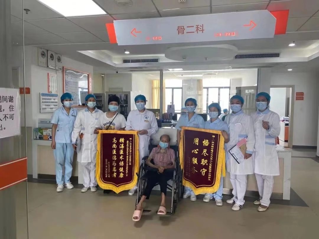 93岁陈奶奶,8月中旬在家走路不慎摔倒,伤后当即感右髋部疼痛、活动受限,伤后急送至我就诊,DR检查结果示“右股骨粗隆间骨折”,入院后要准备手术治疗,家人们都犯愁了,以前奶奶在家生活能自理,现在入院了,哪里找人在医院照顾奶奶呢?如果外请护工,每天费用要300多元,这是一笔不少的花销。随后得知番禺区第二人民医院开展新的陪护服模式,立刻办理了医院的陪护手续。