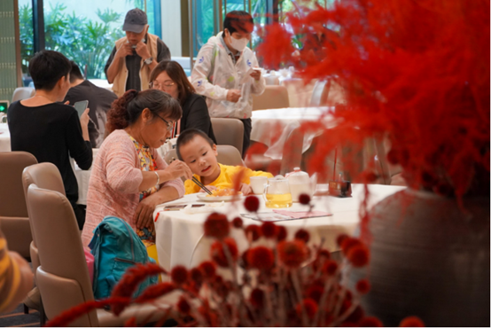 邓姨是银灯食府的熟客,得知银灯食府重开,她今天特意带孙子一起前来。“新店环境比较以前好了,楼顶高,装修时尚。出品还是跟过去一样。”对于邓姨来说,新店选址好,交通便利,“早上带孙子去文化公园玩,中午可以在银灯喝茶。”