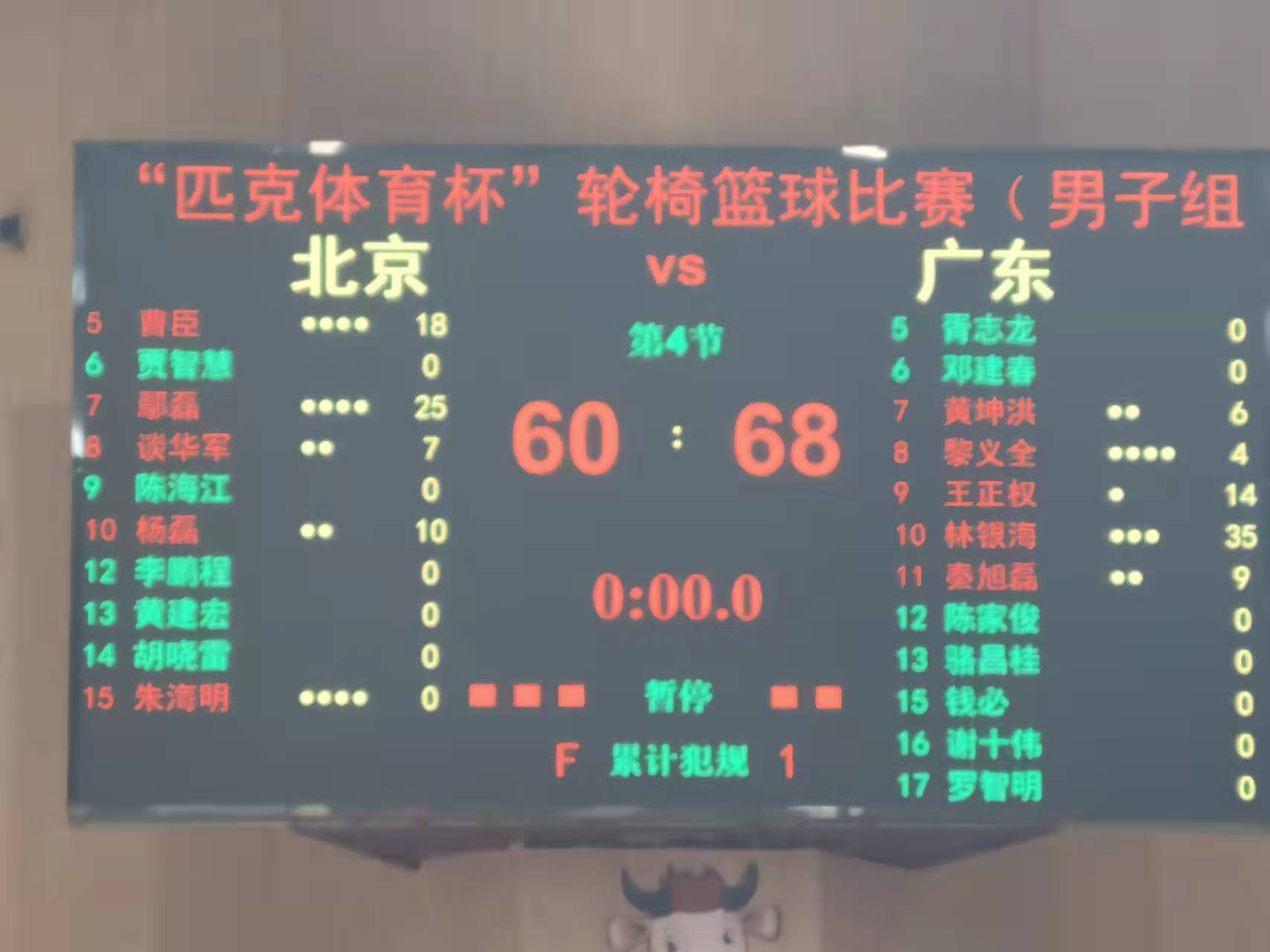 决赛在广东轮椅男篮和北京轮椅男篮间展开,双方一度打得难解难分,比分异常胶着,经过鏖战,最终广东队以 68:60 的比分战胜北京队,首次夺得冠军,创造了新的历史。