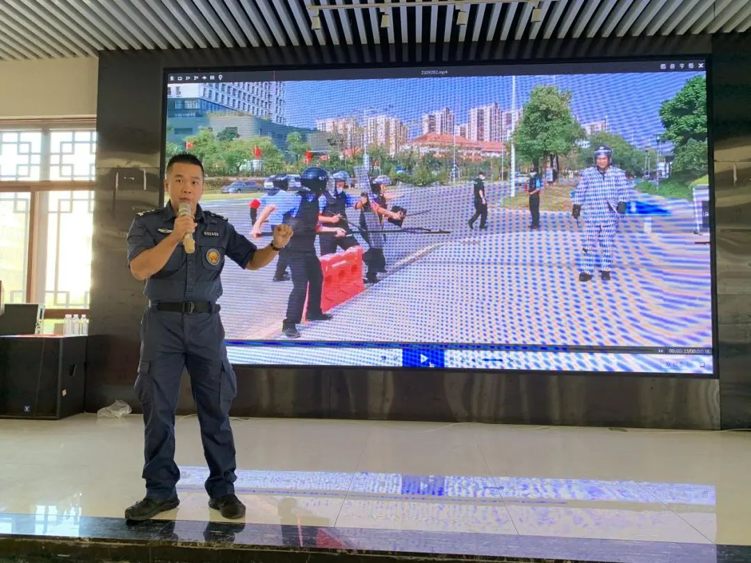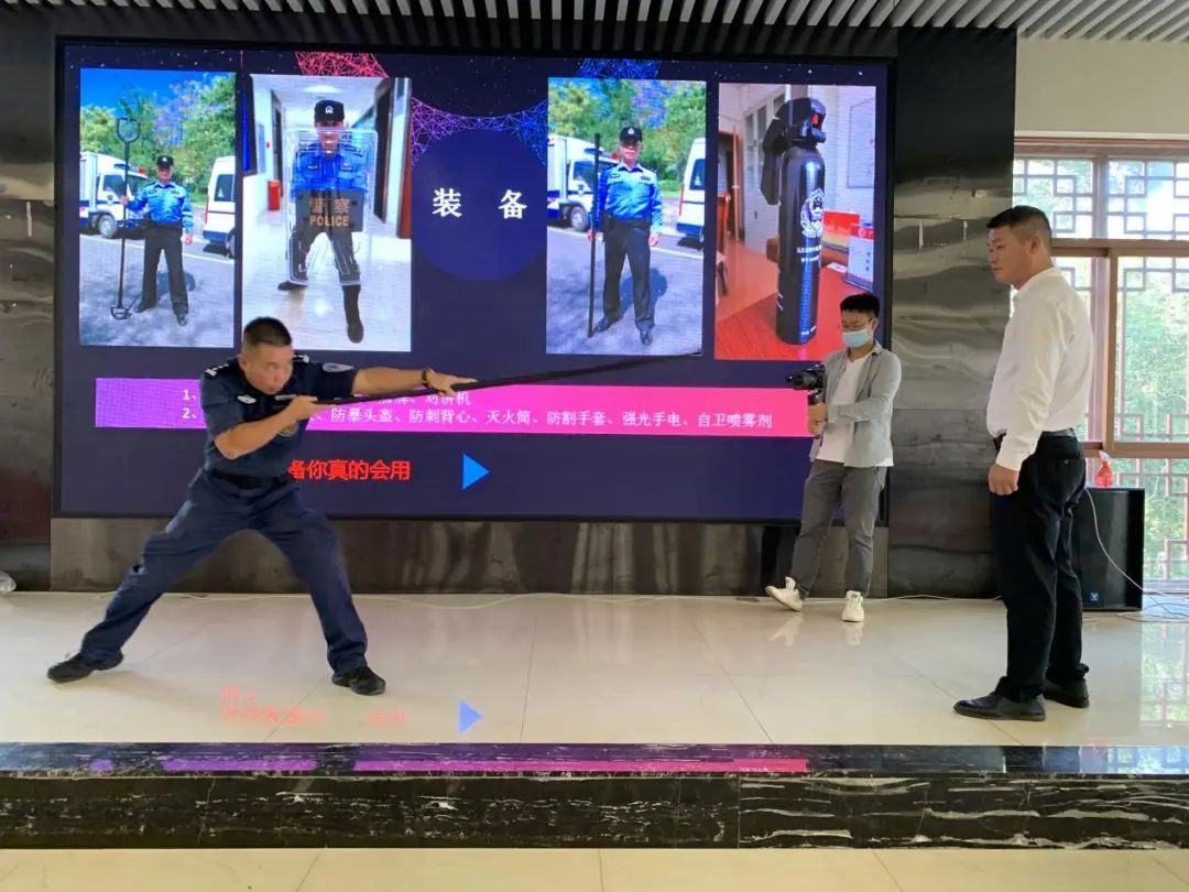 会上,黄冀结合真实案例围绕持械暴力等事件的类型、特点、处理等方面内容对安全意识和应对策略进行逐一讲解,示范、演示了防暴盾牌、防暴钢叉、长棍、灭火器等应急装备实战性配合使用。并模拟突发性事件发生,与参会人员共同开展应急处置的多人配合训练。