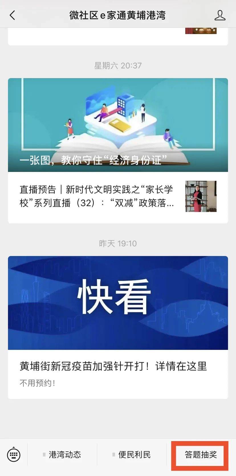 1.识别下方二维码,关注黄埔街官方公众号“微社区e家通黄埔港湾”: