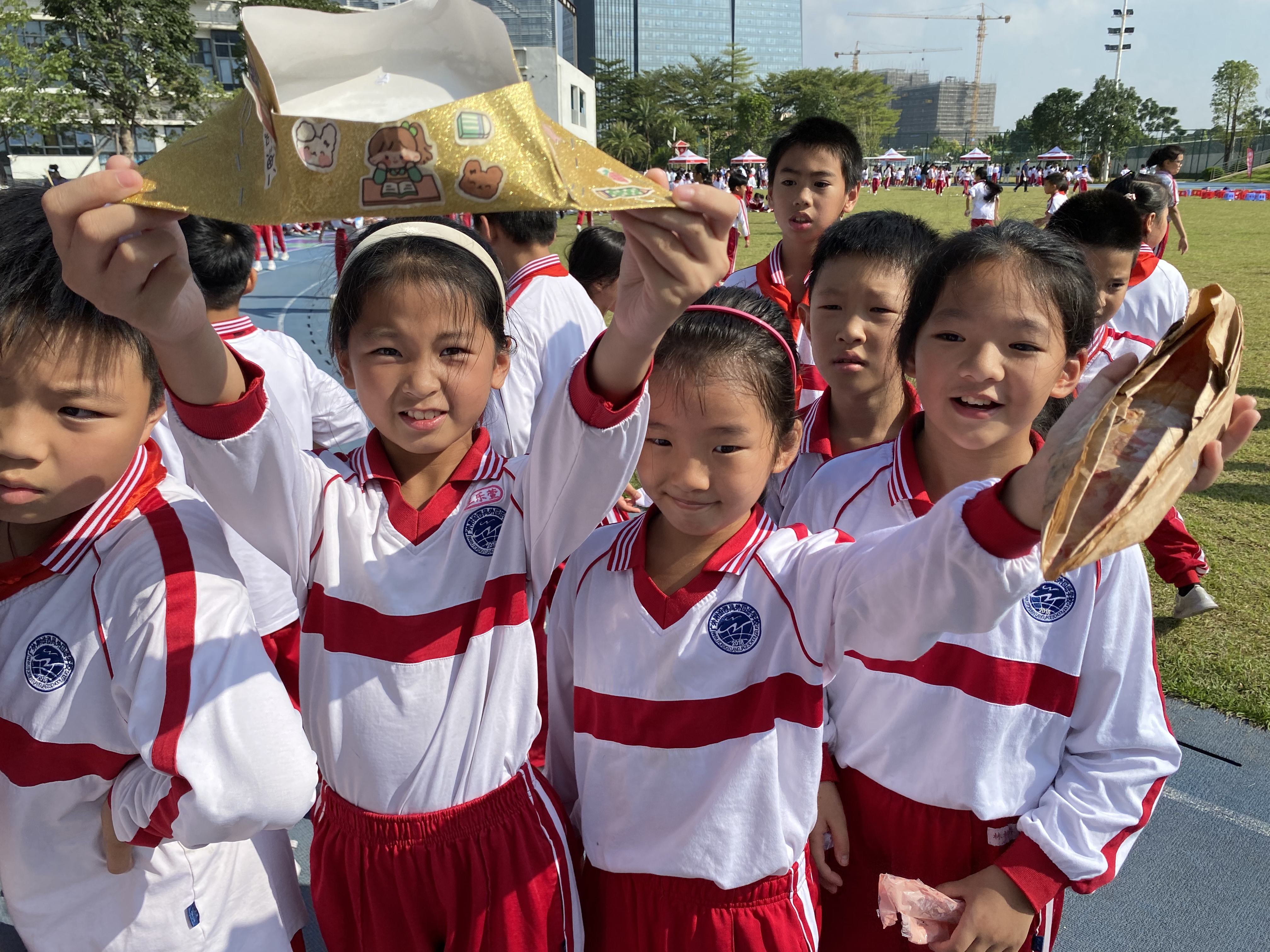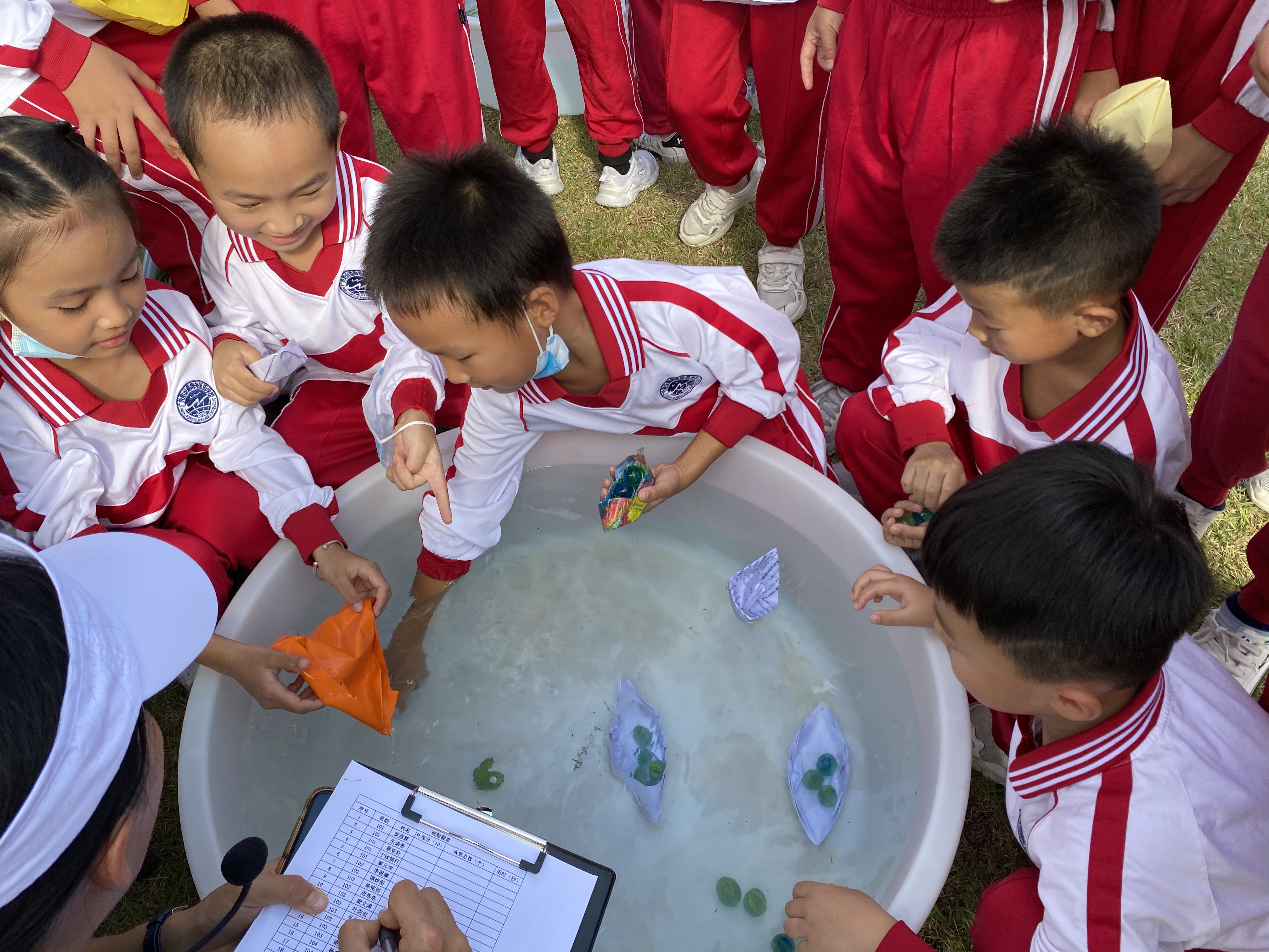 据潘李南介绍,“双减”之后,老师们常常布置主题探究作业、跨学科综合作业,重视以审美、锻炼、操作、体验、探究为要素的作业设计。这次科技节举办之前,老师们就提前布置了科学作业,让同学们回家设计制作各种各样的“科技小发明”,如建筑模型、拼装赛车等,同学们还录了视频,并自己介绍实践过程和作品。同学们在实践中探索生活中的科学,如制作既能防水又能承重的小纸船。为了让纸船实现防水的功能,同学们用上了油纸、塑料纸、卡纸。“我的纸船用的是肯德基的包装纸,装了64颗弹珠还能漂在水上。”一位同学自豪介绍。