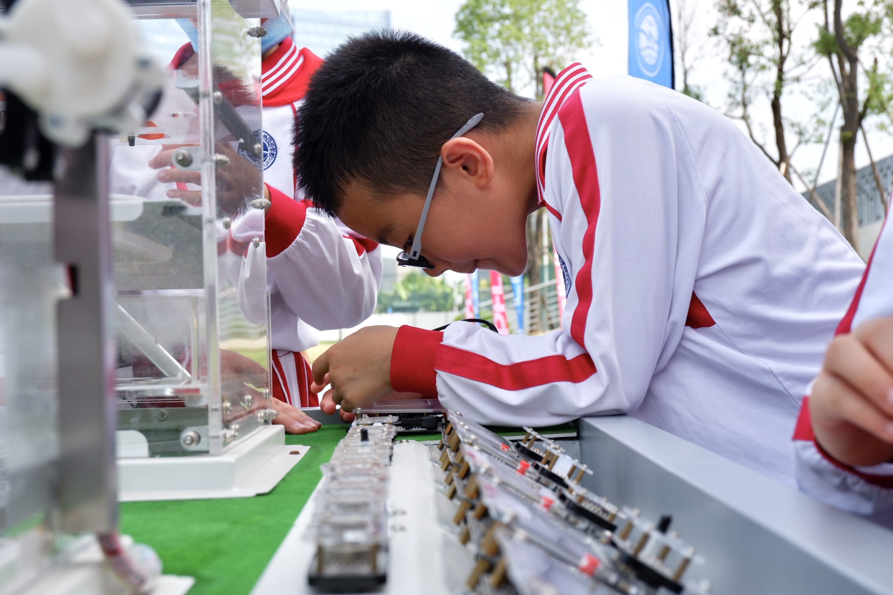 用盐立鸡蛋、自制纸船比赛承重能力、动手和磁流体与非牛顿流体“亲密接触”、体验3D打印、自制以橡皮筋为动力的小车比赛跑得快或慢……10月20日,在广外附设番禺外国语学校(下称“广外番禺外校”)举办的科技节上,学生们在实践中体验科学的魅力。