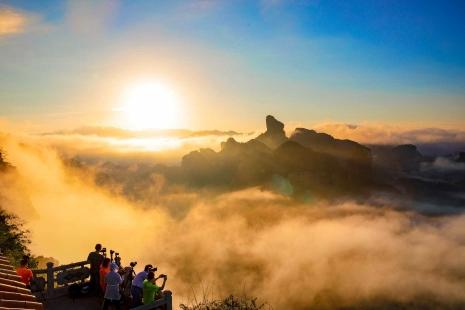 秋高气爽,世界自然遗产地韶关丹霞山已秋韵十足,悬崖峭壁之上的丹霞梧桐和西部成片的稻田悄悄地换上金黄色的衣裳。这个季节,丹霞山将迎来一年旅游休闲、研学科考最舒适的状态,气温下降,湿度相对增强,爬山登高不易出汗;阳光也较为温和,紫外线降弱,舒适度提高;清晨的丹霞山更是云海频现,让人收获意外惊喜。