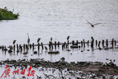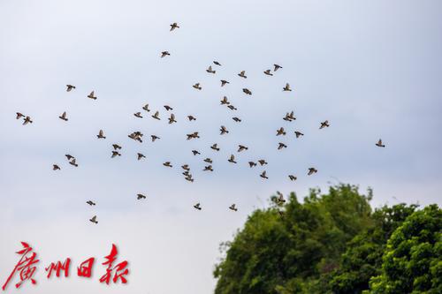 海珠湿地,小鸟成群飞舞。