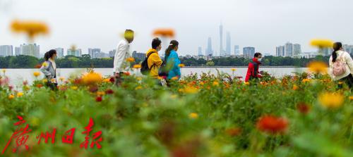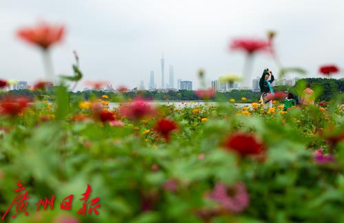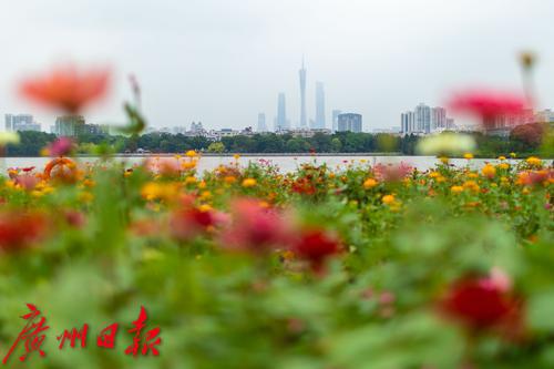 近日,海珠湖“花畔塔影”景区近1.4万平方米的百日草花已到盛花期,百万花朵在海珠湖的滋养下纵情绽放,簇拥成一大片五彩缤纷的彩色海洋。