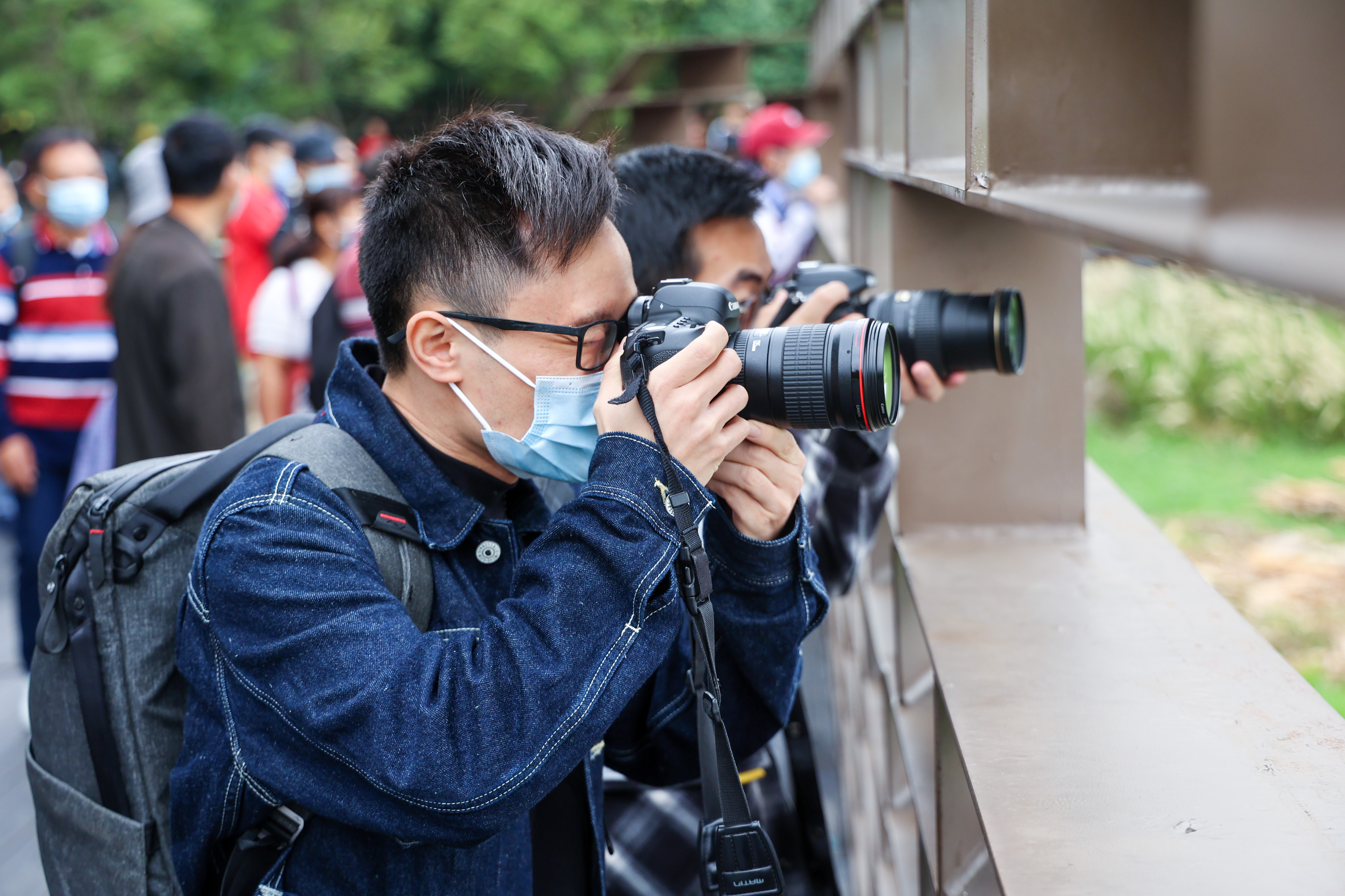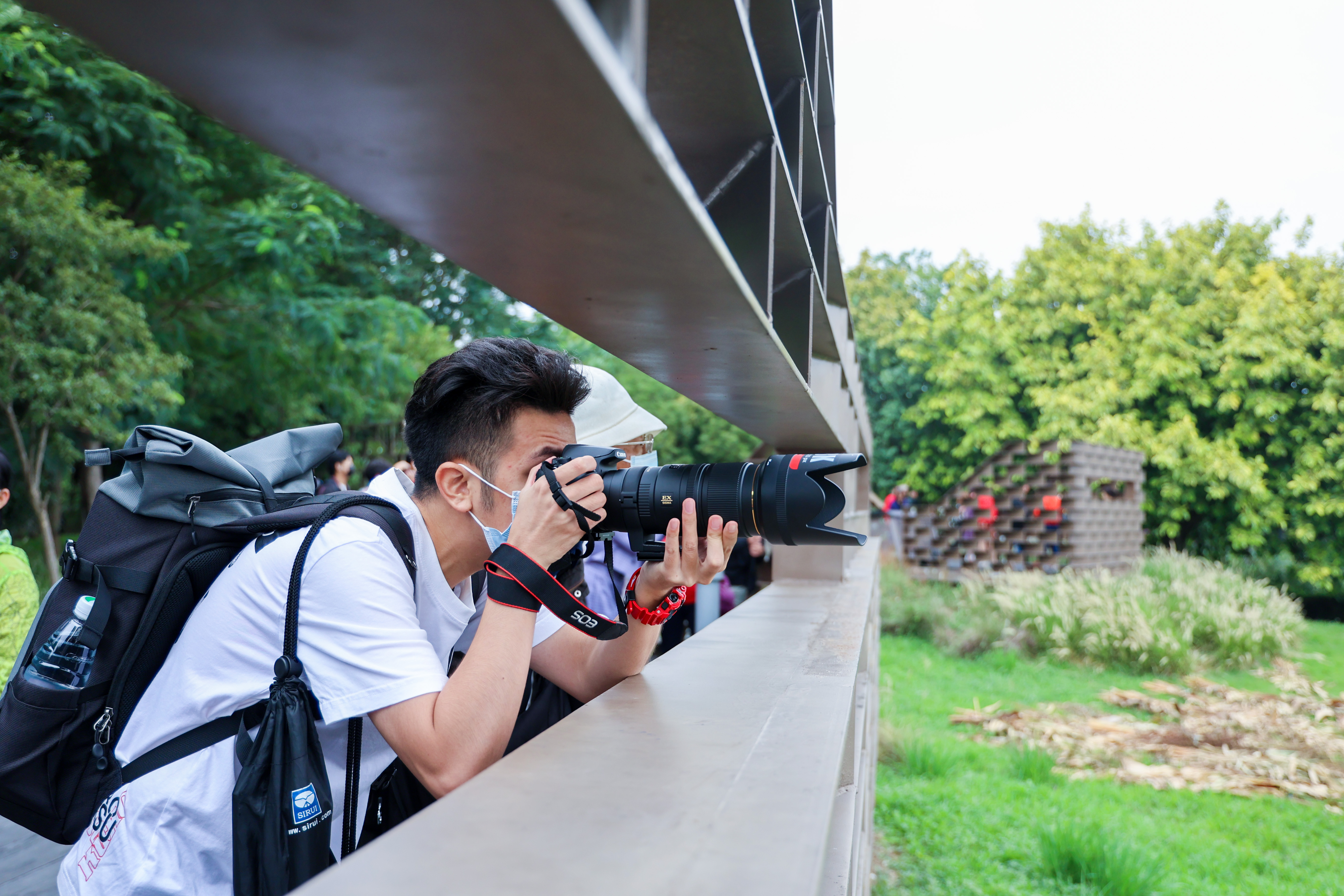 “海珠湖最具地表代表性的机位,就是能拍摄到广州地标‘三件套’的花海了。”在苏俊杰的讲解下,摄影师们都忍不住驻足在距离广州塔最正中的位置,按下快门,将海珠湖、花海与广州地标“三件套”——广州塔、东塔和西塔一并记录下来。摄影师们不断转换拍摄姿势,调整拍摄构图,表现得非常专业。有的蹲下身子以花海为前景取景,有的把花丛中的美人与地标一起框入取景器,还有的一直守候等待飞鸟掠过天空,摄影师们对画面的把控都特别“刁钻”,不会放过任何一个美妙的瞬间。在花畔塔影这个景点,摄影师们大多数都拍到了心仪的照片。除此之外,摄影师心中的最佳取景点,还有以被网友称为“闹市中的滕王阁”的广州新文化馆,以及能够捕捉到各种候鸟嬉水画面的观鸟长廊。