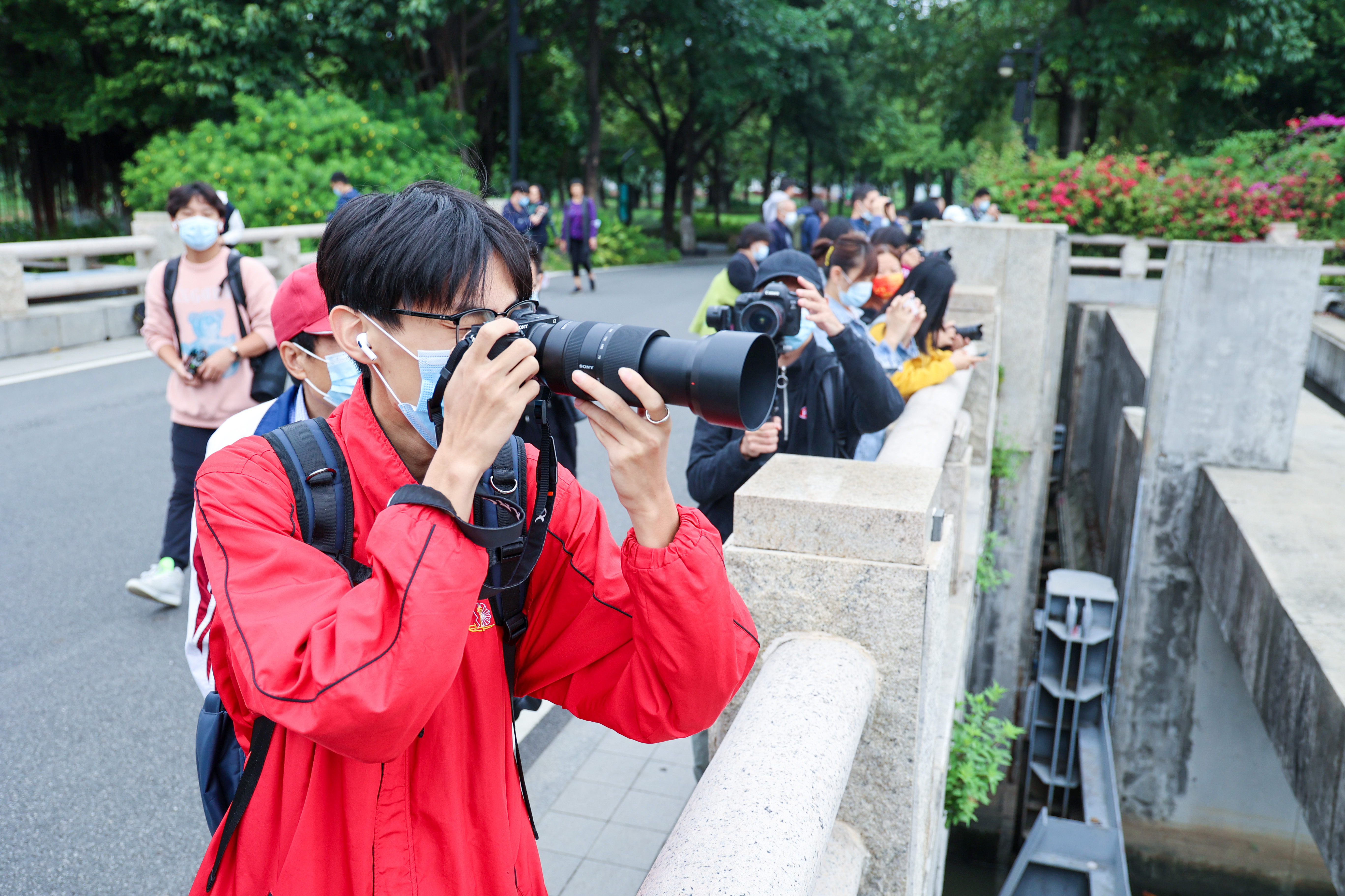 上午八点半,参与活动的摄影师们纷纷抵达海珠湖,他们都有着不同的身份、不同的年龄,却因为对摄影的热爱而共同相聚于此。秋高气爽的天气下,摄影师们纷纷将“长枪短炮”拿出来,期待着今天能拍出赏心悦目的秋日大片。在广州日报资深摄影记者苏俊杰的引领下,摄影师们各自踏上拍摄旅途,分别去寻找属于自己的最美机位。