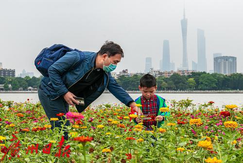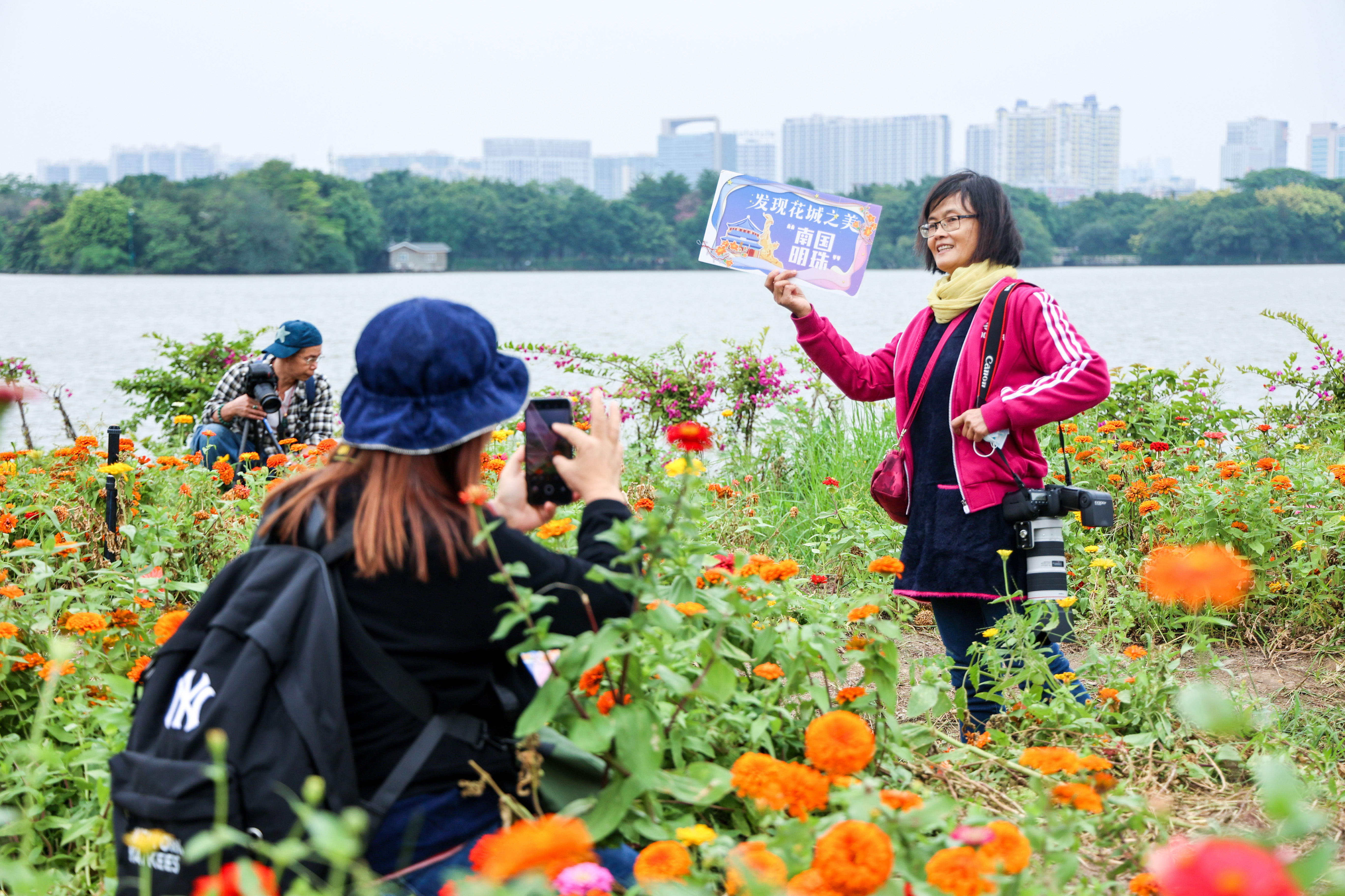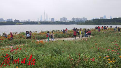 参与活动的摄影师们正在海珠湖的花海中创作。
