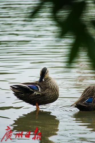 参与活动的一名摄影师正在拍摄海珠湖上的鸟类。
