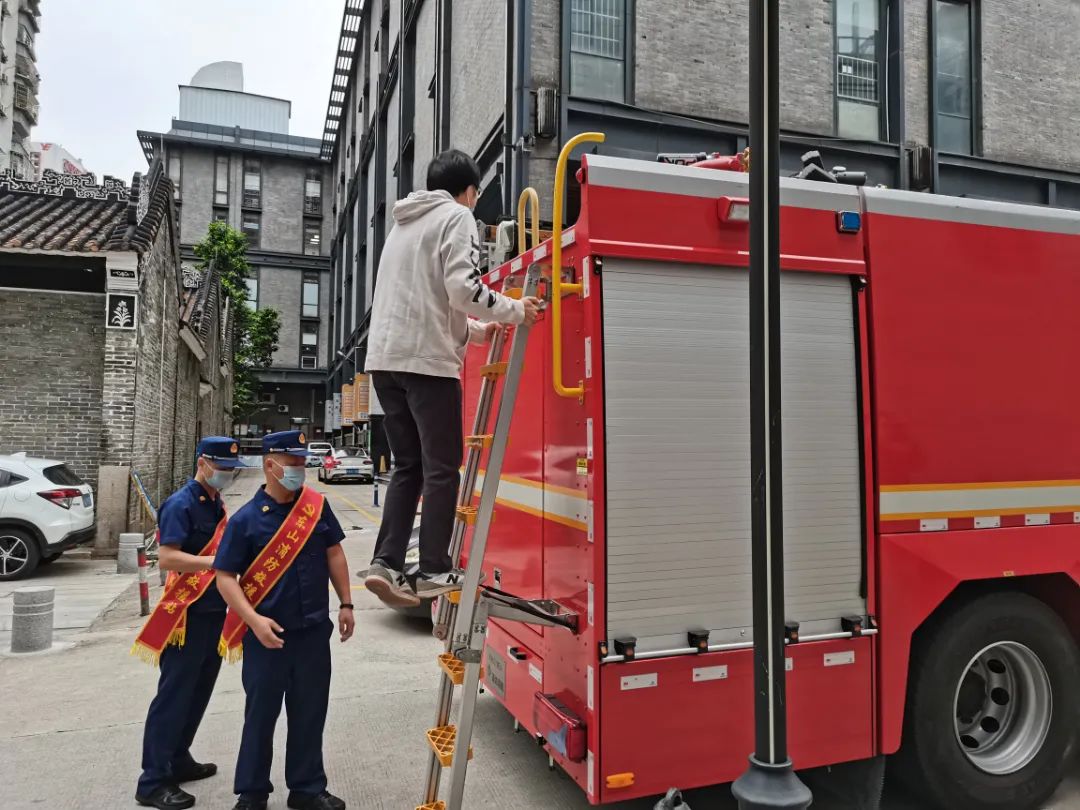 当天下午,东山消防救援站还将消防救援车开进文德社区,让群众亲身体验水枪水带、液压钳等消防设备的使用过程,让群众感受到消防员火场救援的艰辛。