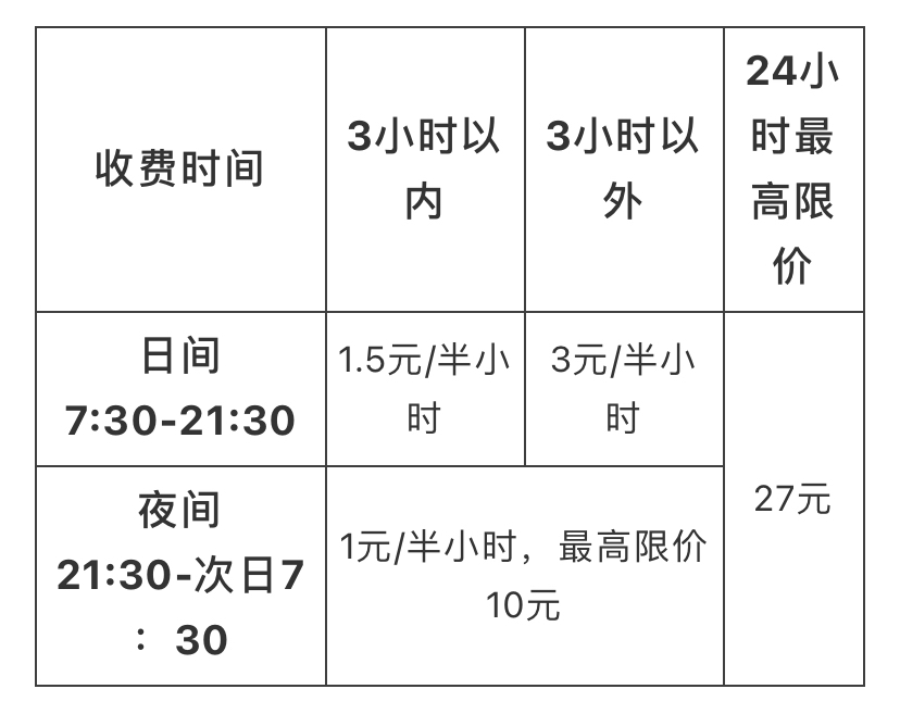 停车不超过15分钟的车辆免费,停放时间超过15分钟的车辆,前15分钟纳入计费时段,计费时段中不足半小时的部分按半小时计算。