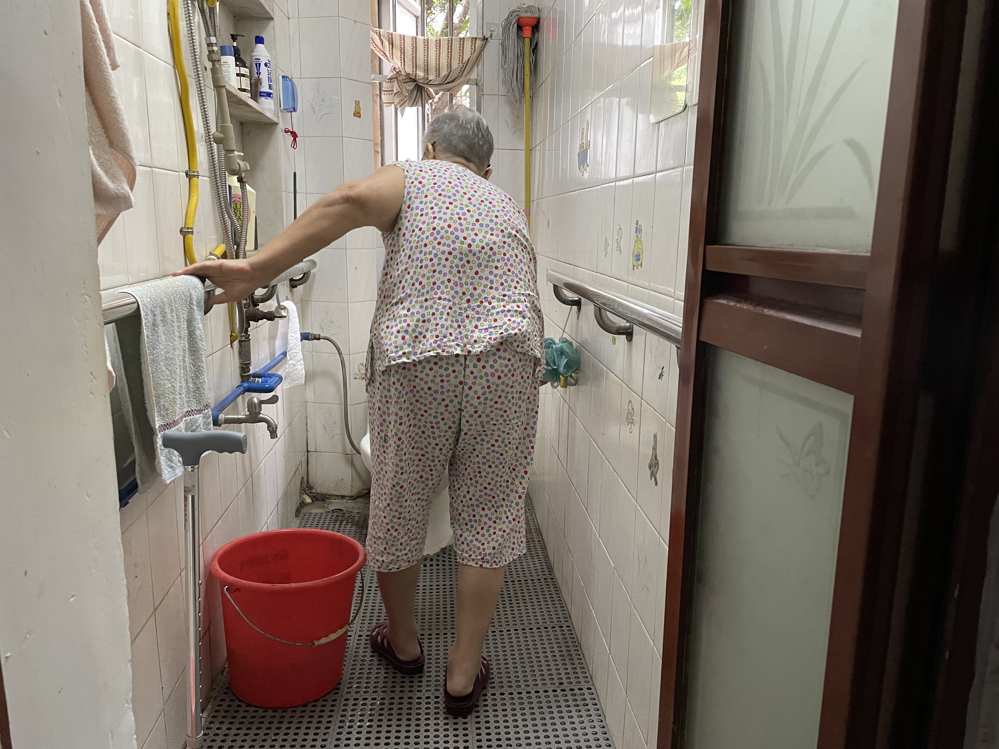 今年7月,政府就开始为张惠荣家进行适老化改造。“摔倒是老年人死亡的第一诱因,所以我们为张惠荣做适老化改造时,做得最多的就是防滑改造,比如在卫生间、厨房、卧室等区域,铺设防滑砖或防滑地胶,在如厕区或者洗浴区安装扶手,辅助老年人起身、站立、转身和坐下,同时为她配置淋浴椅等。”负责张惠荣家庭养老床位适老化改造的黄埔区红山街社区卫生服务中心副主任齐国华告诉记者。
