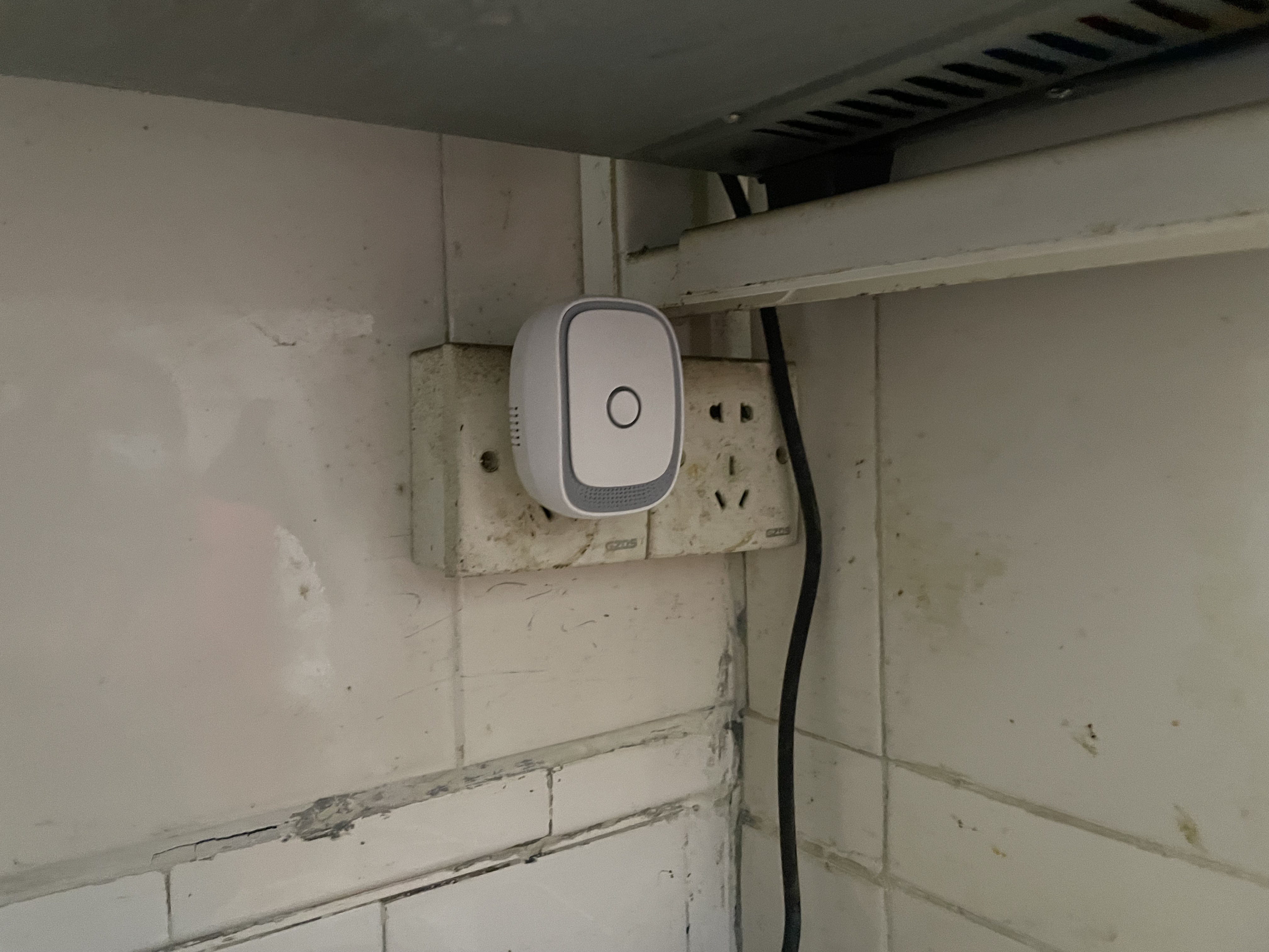 记者在她家卧室的床垫下看到了一个长方形的生命体征监测设备,这个设备支持WiFi连接,同时可以动态监测和记录呼吸、心率等参数,发现异常可以自动提醒。张惠荣的床头、厕所、客厅分别安置了三个戴着红色按钮的紧急呼叫器,只要老人一按,社区相关工作人员就会立刻收到信息。而在老人的厨房内,记者看到一条白色的溢水报警器,厨房微波炉的上方按着烟雾报警器、厨房内一个插座上,还有一个煤气泄漏的报警器。