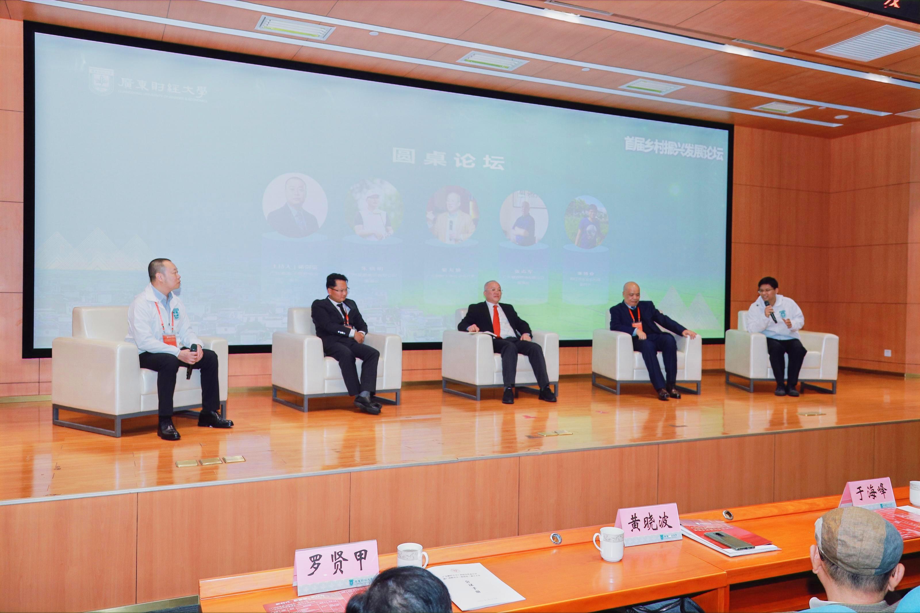 在圆桌论坛环节,专家学者及相关嘉宾以“高校赋能(基层)乡村振兴”为核心,对高校赋能乡村振兴的“知识赋能、学科建设、人才建设”等问题进行探讨。嘉宾从科技、产业、生态、人才、金融、文化等不同方面,探讨广财在乡村脱贫攻坚和乡村振兴实践中如何发挥学科优势、提供广财智慧。
