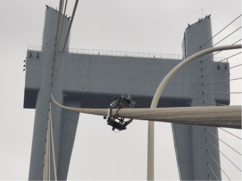 桥梁缆索机器人在黄埔大桥,智能检测大桥养护