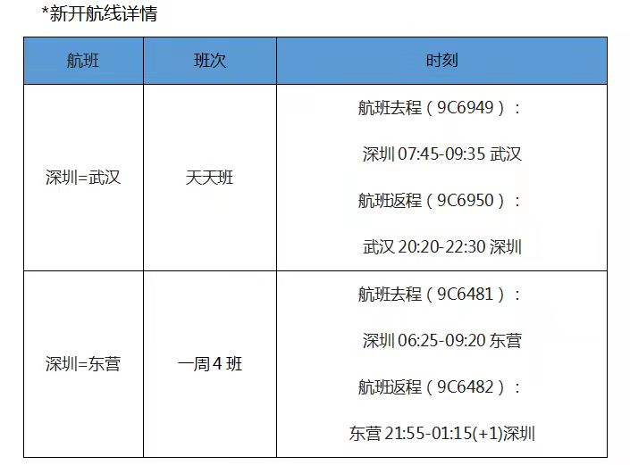 春秋航空开通深圳至武汉、深圳至东营航线 10月31日首航