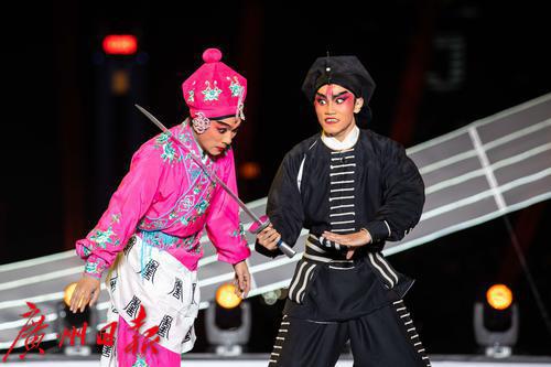 梁文超、李嘉宜演绎《一把存忠剑》之“斩经堂”。