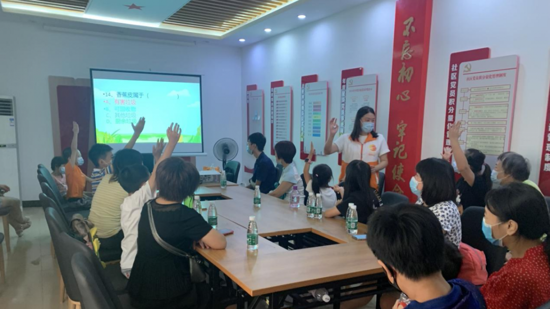 活动开始,亲子家庭们认真观看短片,短片阐明了造成环境污染和破坏的原因,参与者纷纷表示自己深刻认识到了垃圾分类的重要意义。而后的知识竞赛环节中,活动参与者踊跃抢答问题,在问答互动中进一步巩固对垃圾分类的认识。